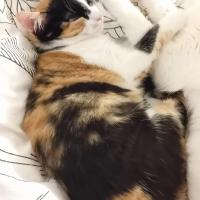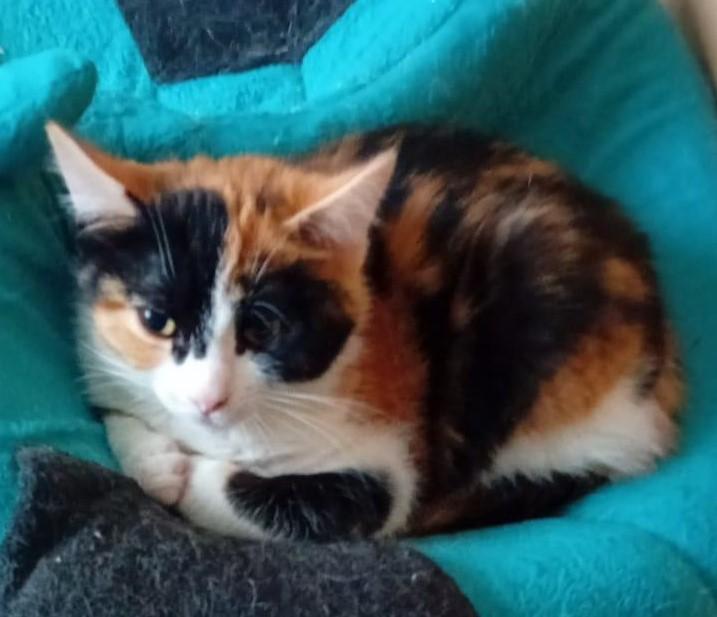 Petite minette tricolore très craintive, une approche tout en douceur est nécessaire. Elle s'approche de l'humain que la nuit pour le moment le travail de socialisation à progressé mais reste à poursuivre.