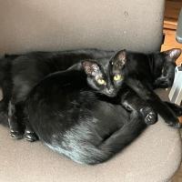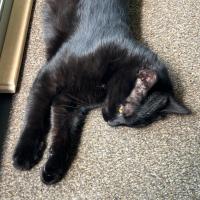 Chatonne curieuse, qui se laisse caresser et démarre le ronron au quart de tour. Très gourmande. Aime observer dehors Sociable avec ses congénères et le chien de la maison. Aime jouer et observer dehors.